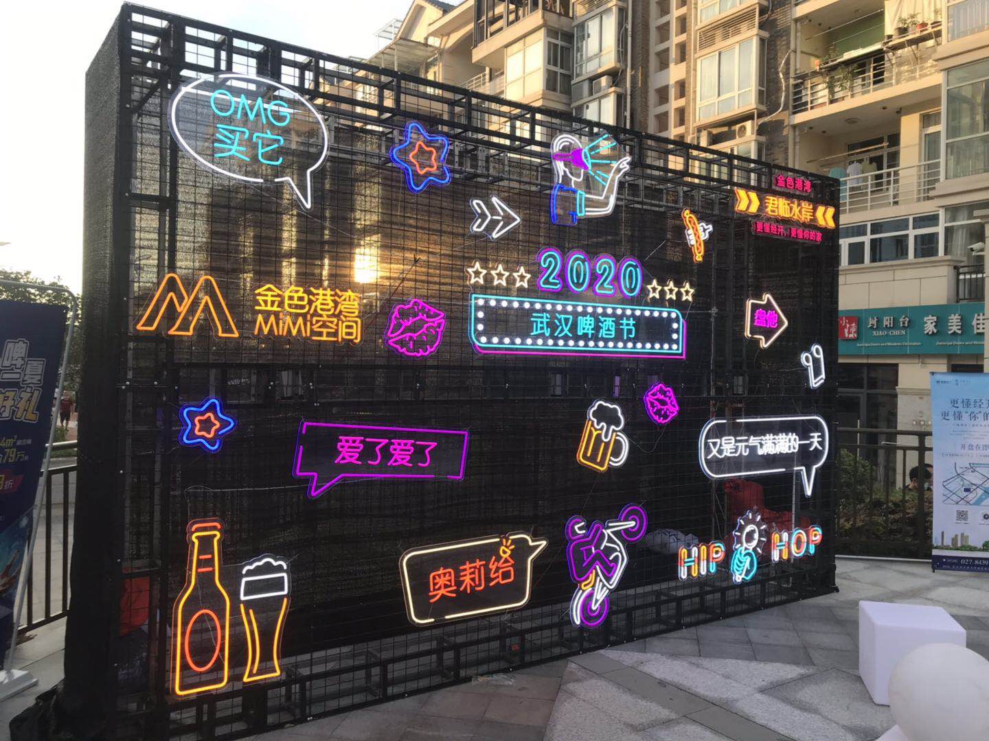 主頁活動案例法國街啤酒節(jié)霓虹燈墻集市攤位